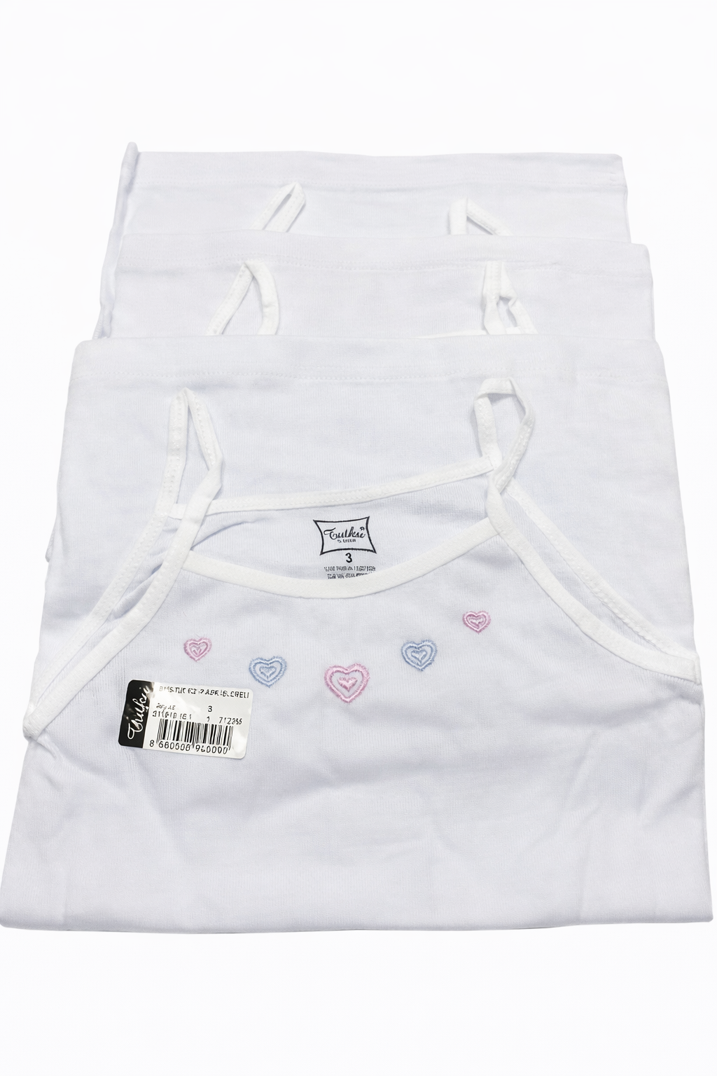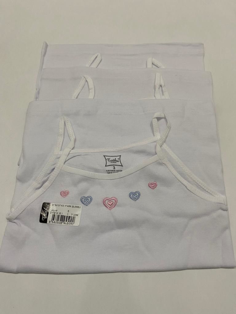 Tutku 3 lü Paket Beyaz Kız İp Askılı Atlet